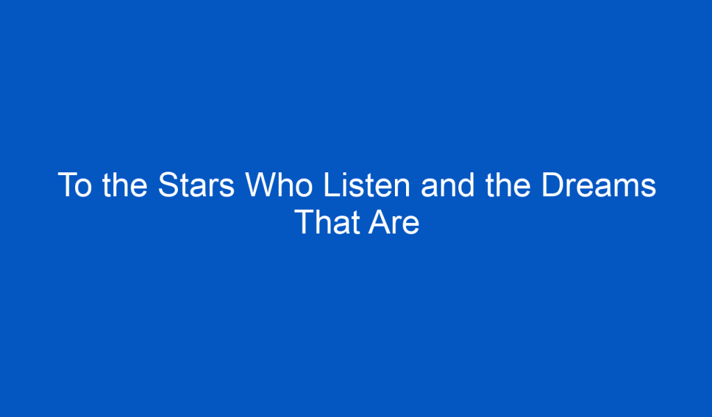 To the Stars Who Listen and the Dreams That Are Answered Have you ever felt like the universe was listening
